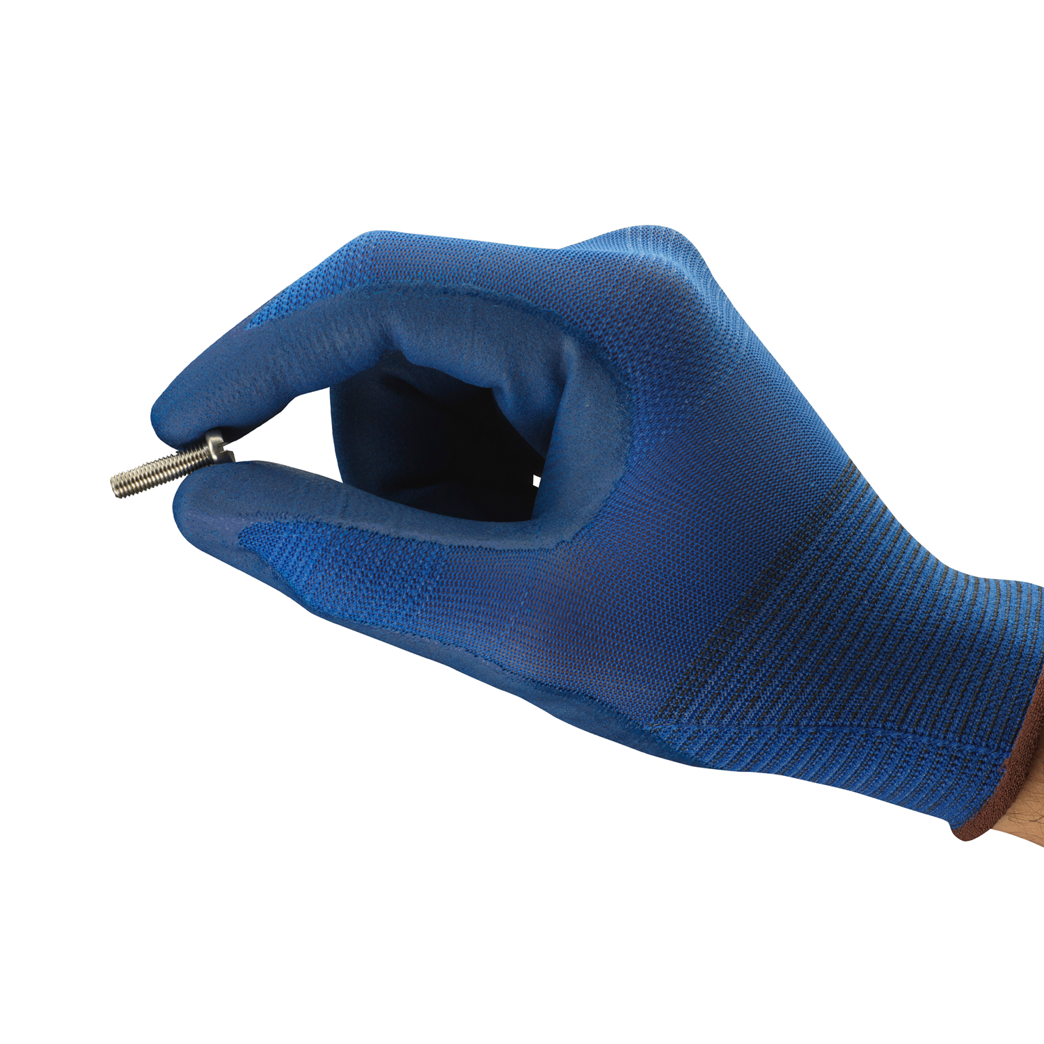 - Unter rauen Arbeitsbedingungen hat die extrem dünne FORTIX?- Nitrilschaumschicht eine dreimal längere Lebensdauer als vergleichbare Handschuhe und senkt somit die Gesamtbetriebskosten.- Die FORTIX?-Beschichtung bewirkt einen verstärkten Trockengriff und zeichnet sich durch eine um 20 % grössere Atmungsaktivität als frühere Formulierungen aus. Das Ergebnis: Kühlere, trockenere Hände, weniger Schweissbildung. - Das nahtlose Nylon-Spandex-Trägermaterial mit einer Fadenstärke von 18 Gauge vermittelt ein Arbeitsgefühl fast wie mit blossen Händen und ermöglicht den Fingerspitzen die Tastsensibilität, die für komplexe Feinarbeiten erforderlich ist. - Die ZONZ Comfort Fit Technology von Ansell passt das Trägermaterial für eine erhöhte Trägerleistung, Atmungsaktivität und Bewegungsfreiheit der anatomischen Form der Hände an. Mit einer Abriebfestigkeit der EN-Stufe 3 bietet der extrem leichte HyFlex 11-818 den idealen Schutz bei Allgemein- und Montagearbeiten.- Silikonfreies Material bedeutet: Keine Verunreinigung von Metallteilen vor Lackierarbeiten durch eine Übertragung von freigesetzten Silikonpartikeln.