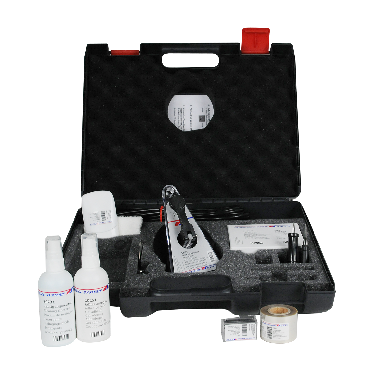 Für Steinschlagreparaturen an Verbundglas-Windschutzscheiben. Das Set wurde speziell für den anspruchsvollen und täglichen Werkstatteinsatz konzipiert.