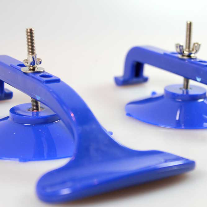 Saug- und Fixierheber aus stabilem Kunststoff und hochwertigen Gummisaugnäpfen. Zum Fixieren und Andrücken von Zierleisten, Scheibenrahmen, Emblemen etc. Individuelle Positionierungsmöglichkeiten. Anpressdruck mittels Flügelschraube regulierbar.
