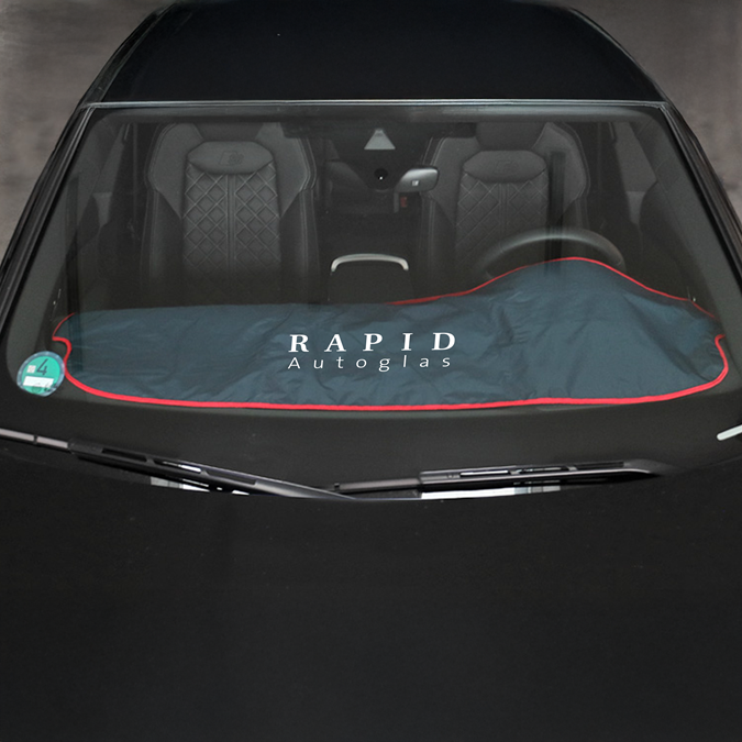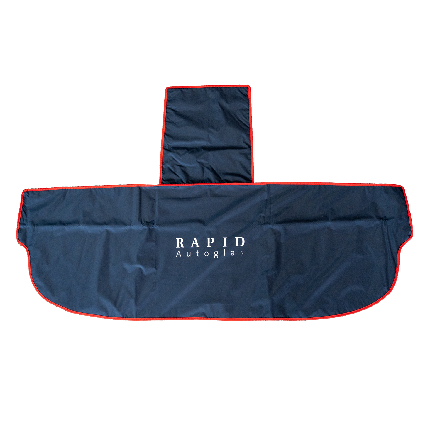 Armaturenbrettabdeckung mit rutschfester, gepolsterter Rückseite zum Abdecken und Schützen von Armaturenbrettern beim Windschutzscheibenersatz.