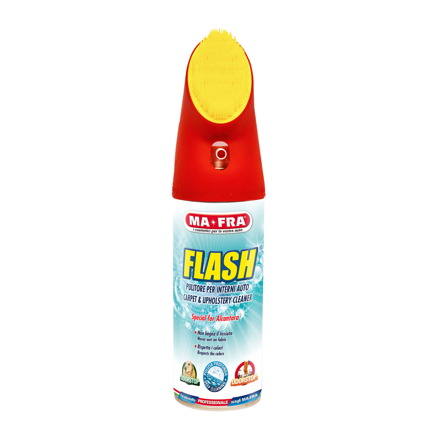 Universeller Textilreiniger. Zum guten Aussehen des Autos, gehören auch einwandfreie Sitzbezüge! Aus diesem Grund hat Ma-Fra FLASH, den revolutionären Textilreiniger, entwickelt, der für all die Situationen geschaffen wurde, in denen man eine Wäsche traditioneller Art nicht vornehmen kann. FLASH eignet sich für alle Textil-Arten, auch für empfindliche wie zum Beispiel Samt oder Alcantara. Das Gewebe wird nicht feucht und wie schon der Name sagt, wirkt es ausgesprochen schnell. Durch die Wirkung des Aktivschaums entfernt FLASH mit Leichtigkeit den Schmutz der sich in den Fasern festgesetzt hat und führt gleichzeitig eine hygienisierende Reinigung durch.