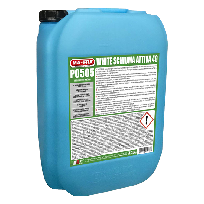 Numero dell'articolo C23964 Denominazione Shampoo White Schiuma Attiva 4G P0505 25kg Ma-Fra White Schiuma Attiva Disponibilità