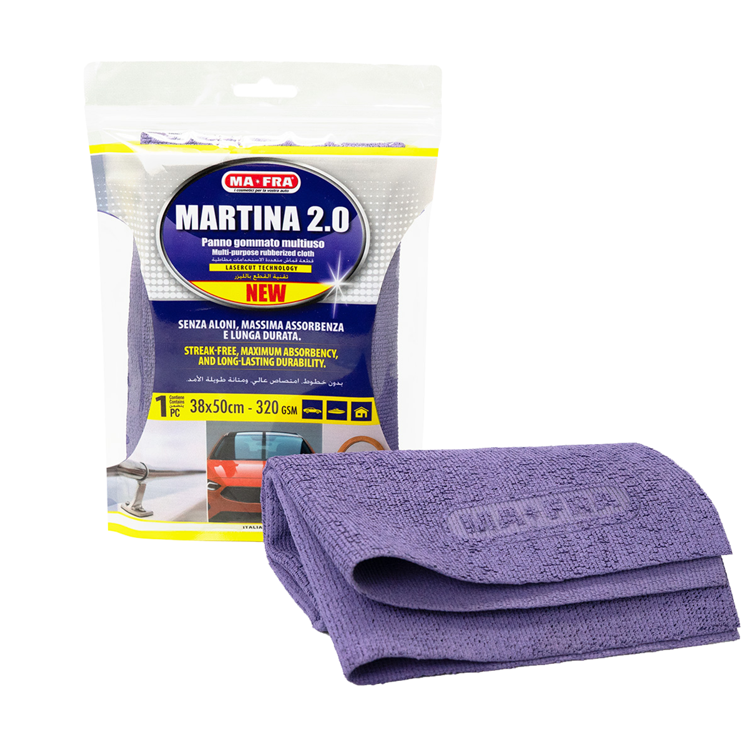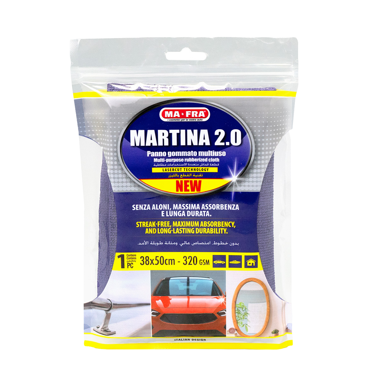 Martina 2.0 ist ein vielseitiges Hightech-Gummituch, das speziell für die professionelle Reinigung und Pflege entwickelt wurde. Es überzeugt durch streifenfreie Tiefenreinigung selbst auf empfindlichen oder glänzenden Oberflächen wie Glas, Spiegel, Chrom, Edelstahl und lackierten Flächen. Dank der speziellen Faserstruktur entfernt Martina 2.0 selbst hartnäckigen Schmutz und Wasserflecken mühelos und sorgt für ein perfektes Finish – ohne Rückstände.Das Tuch nimmt grosse Mengen Wasser auf, ohne zu tropfen, lässt sich leicht auswringen und ermöglicht eine schnelle, gleichmässige Trocknung. Martina 2.0 gleitet angenehm über jede Oberfläche, ist sofort ausspülbar und reduziert den Reinigungsaufwand deutlich – selbst mit wenig Reinigungsmittel. Es ist extrem langlebig, formstabil und für den täglichen Einsatz bestens geeignet.Ob in der Carrosserie, Garage, im Haushalt oder auf dem Boot – Martina 2.0 ist überall einsetzbar: für Glas, Teppiche, Kunststoff, Leder, Armaturen, Kochfelder, Duschen, Waschbecken und vieles mehr. Für die beste Leistung wird die Anwendung im leicht feuchten Zustand empfohlen – nie trocken und nie triefend nass.