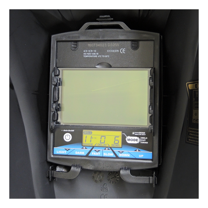 Schweissschutzhelm mit moderner Sensorik und Ablendautomatik. Ein extra breites und gut gepolstertes Kopfband erhöht den Tragekomfort und verringert merklich die Ermüdungserscheinungen.- Extra grosses Sichtfester 97x60 mm - Hervorragende Reaktionszeit 1/20.000 sec.- Variable Verdunklungs-Schutzstufen von 9-13- Feineinstellung der Optikempfindlichkeit- 4 unabhängige Lichtbogen-Sensoren- Stromspar Abschaltautomatik - Auto-ON /Auto-OFF- Schnelles und einfaches Auswechseln der Filterschutzschieben